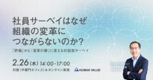 『社員サーベイ活用セミナー』を2026年2月26日(木)に開催します2026-01-15 ̄ ̄ ̄ ̄ ̄ ̄ ̄ ̄ ̄ ̄ ̄ ̄ ̄ ̄ ̄ 概 要______________ 社員サーベイ活用セミナー社員サーベイはなぜ組織の変革につながらないのか―「評価」から「変革の種」に変える、対話型サーベイ― ▢ 開催日時:2026年2……more >
