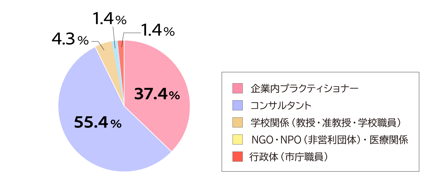 ストーリーテリング・プラクティショナー養成コースにこれまで参加くださった方たち(2011年〜2025年:139人)の内訳です。企業内プラクティショナーやコンサルタント、学校関係の方など、多様な方たちが学び合い、実践に向けた探究を行っています。