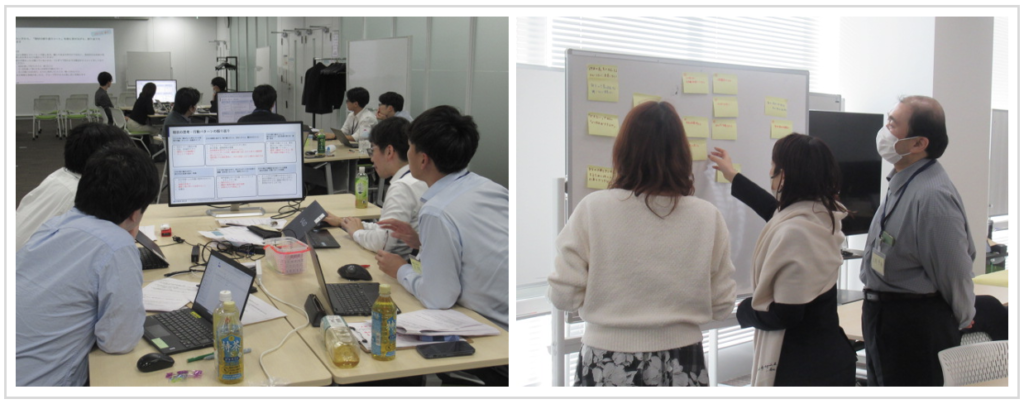 そもそもこの研修は、具体的なリーダーシップ行動が自然に表れやすいように設計されています。正解のない問いに向き合う探求型のワークや、組織の構造課題を扱うディスカッション、シナリオプランニングなどを通じて、参加者一人ひとりの思考の癖や、周囲との関わり方、リーダーとしてのスタンスが可視化されていきます。