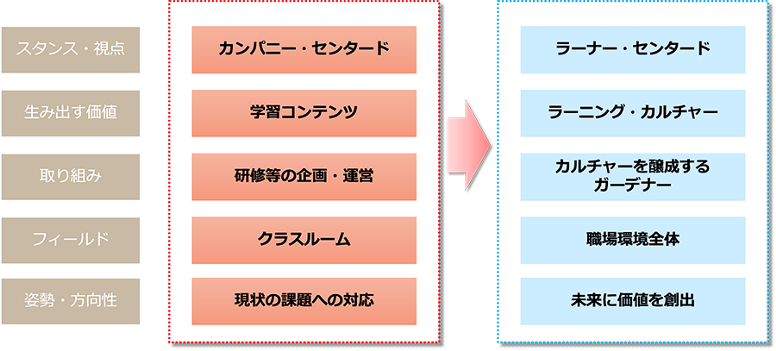 ここまでラーニング・カルチャーを育むための人材開発部門のアプローチについて述べてきましたが、ではそれを推進する人材開発スタッフ一人ひとりは今後どのように成長していくことが期待されるでしょうか。